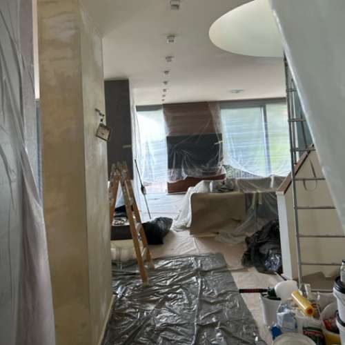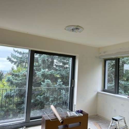 Felület előkészítése: Régi festék és tapéta eltávolítása, repedések kitöltése, alapos tisztítás.